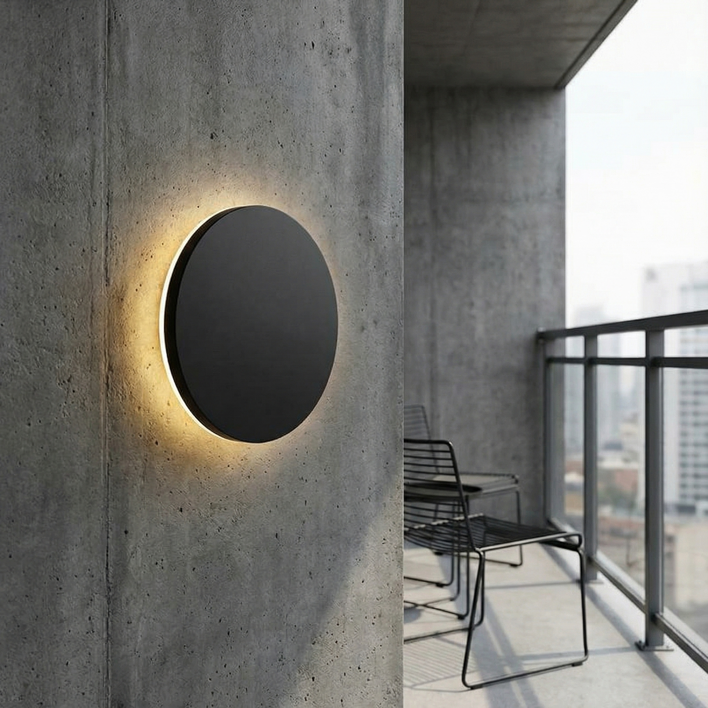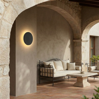 Designed with an acrylic casing, it sports an elegant black finish and a compact circular shape of 15 cm in diameter, easily fitting into a contemporary and sophisticated exterior architecture.