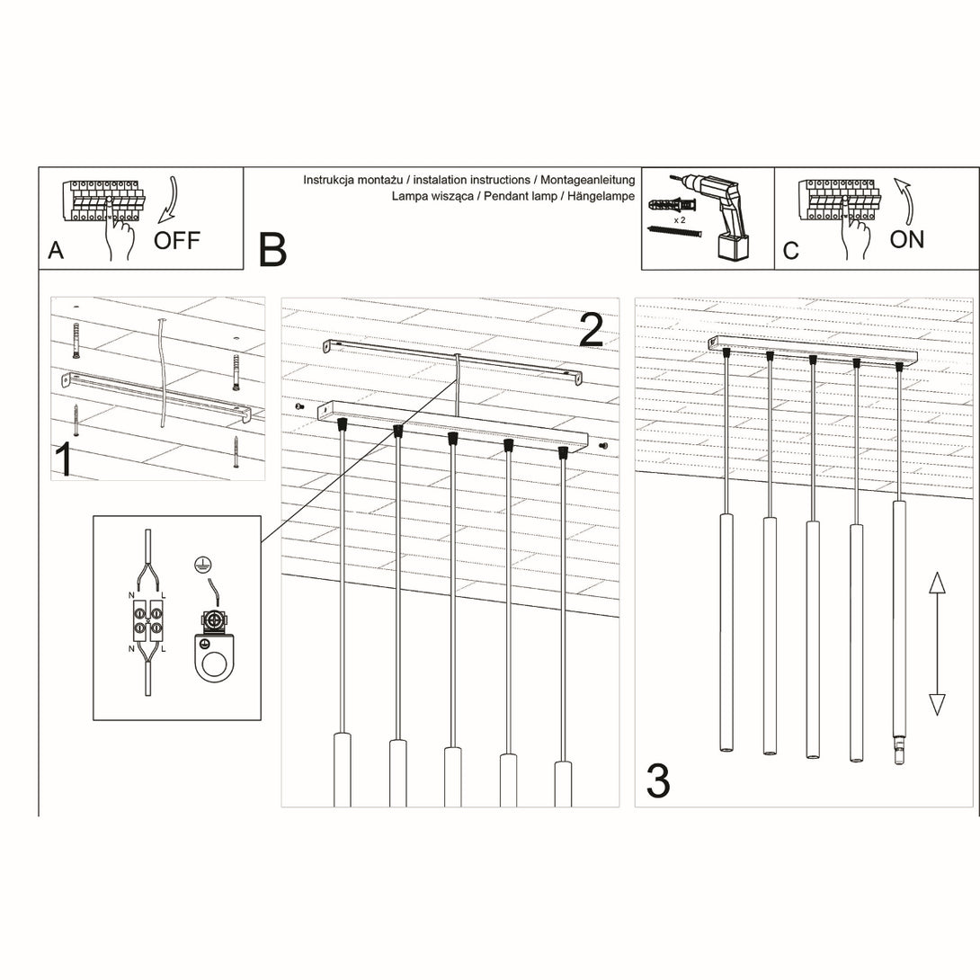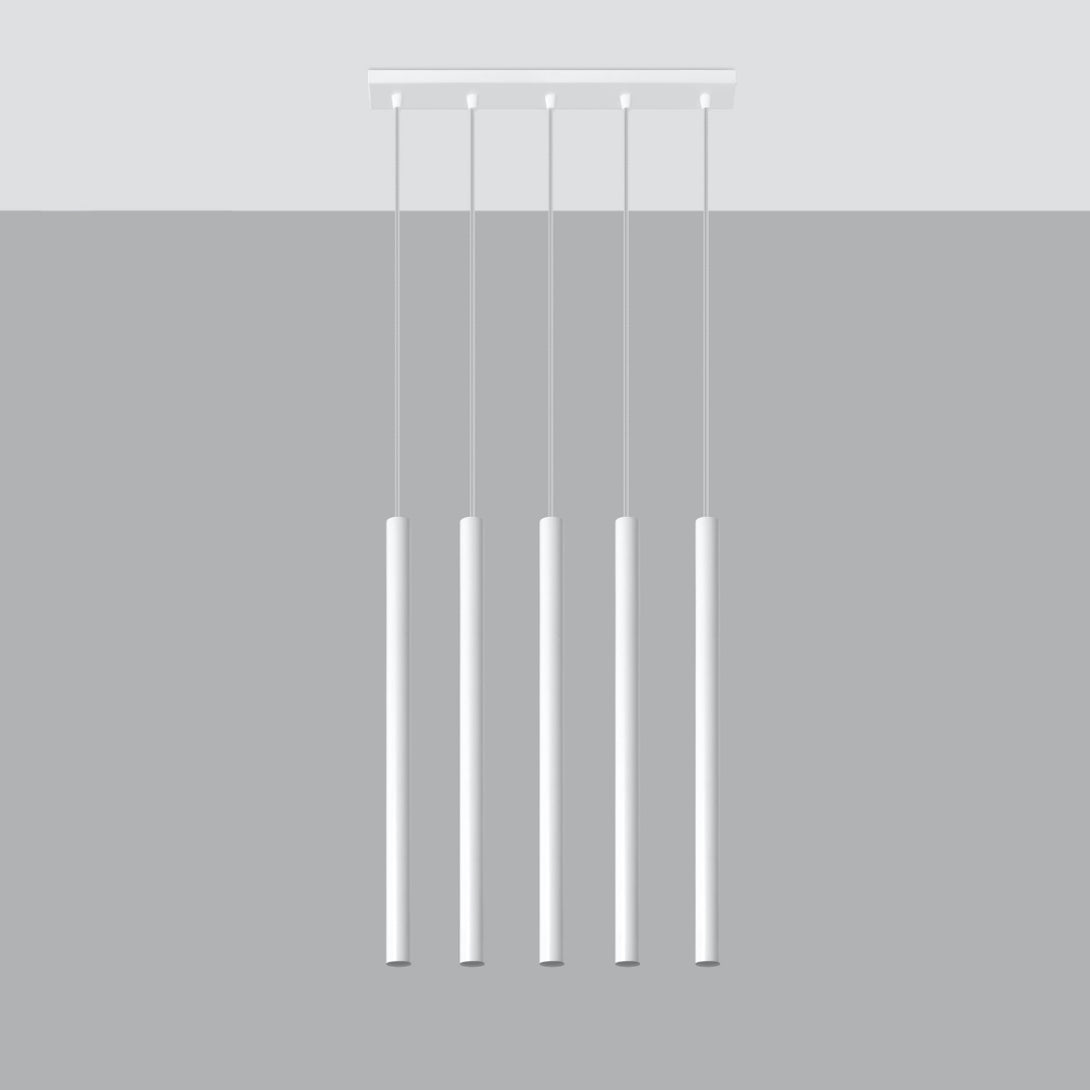 Witte cilindervormige hanglamp met 5 lichtpunten voor de woonkamer – model Arvénis