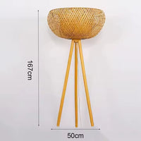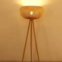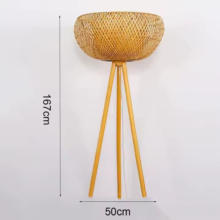 Staande lamp van rotan en zwart metaal voor de woonkamer – Rotanique