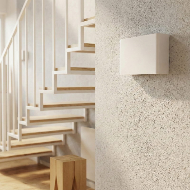 De witte stalen structuur geeft haar een uitgesproken eigentijdse uitstraling, terwijl ze toch eenvoudig te integreren is in verschillende interieurstijlen, van minimalistisch tot warm. Het ontwerp benadrukt de puurheid van de lijnen en de soberheid van de volumes, voor een strak en harmonieus visueel effect. Dankzij het formaat, ontworpen om discreet te blijven en toch een mooi lichtoppervlak te bieden, vindt de Neravia wandlamp gemakkelijk haar plek in een woonkamer, slaapkamer, hal of kantoorruimte.