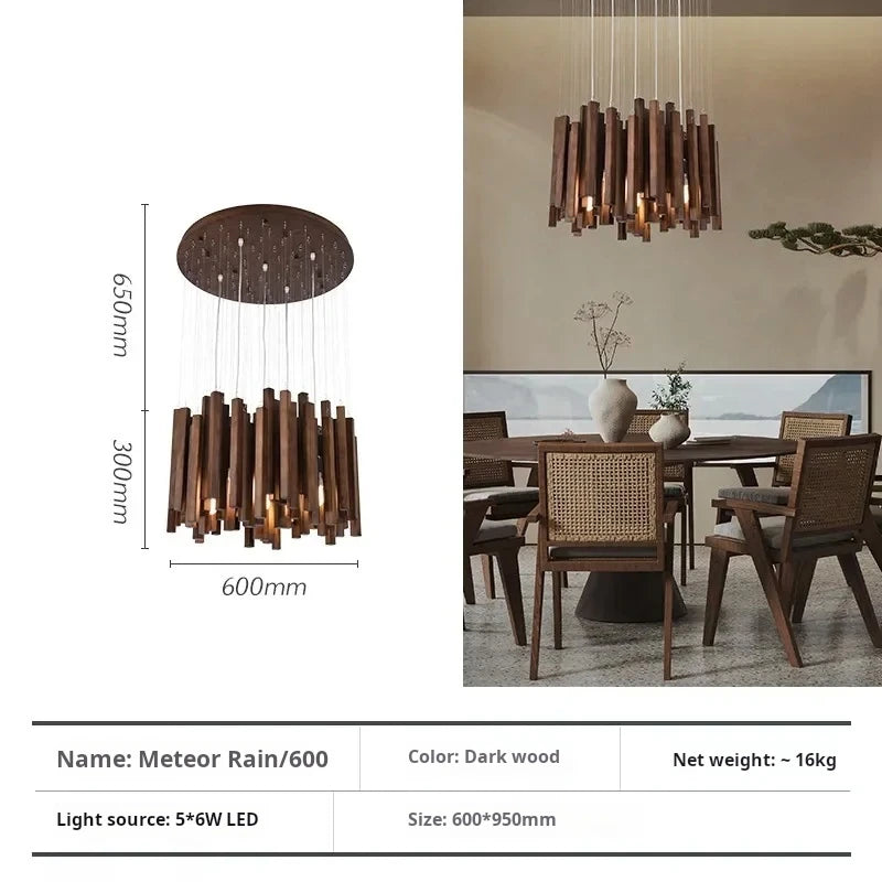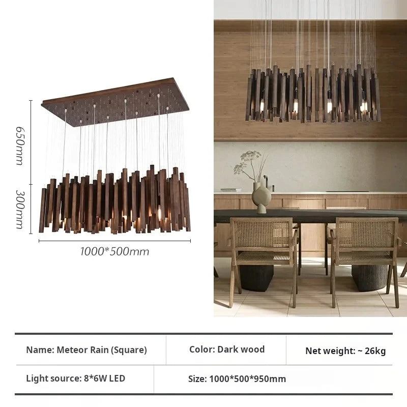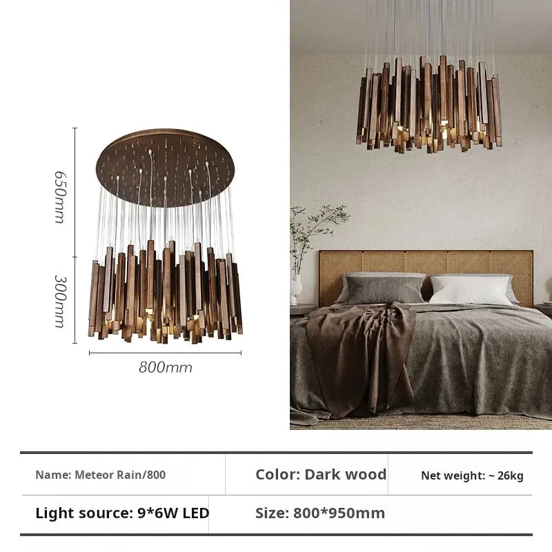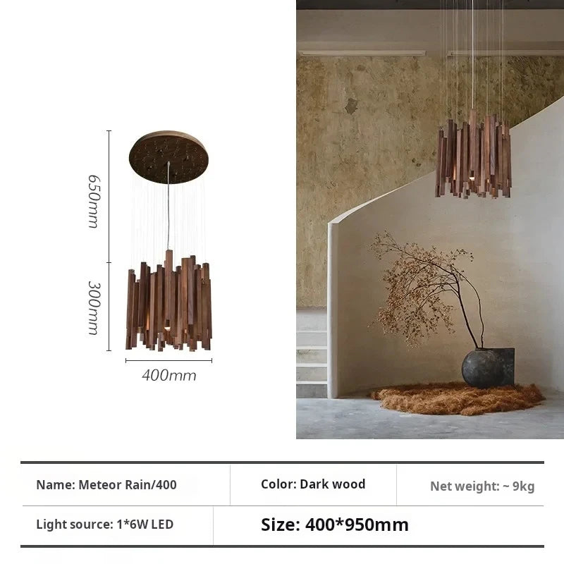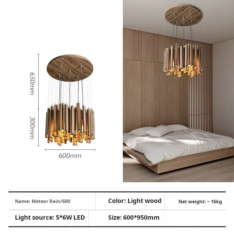 Vergoldete Holzpendelleuchte für Wohnzimmer – Zénithar