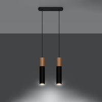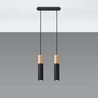 Moderne schwarze Holz-Hängeleuchte, 2-flammig – Modell Norvane