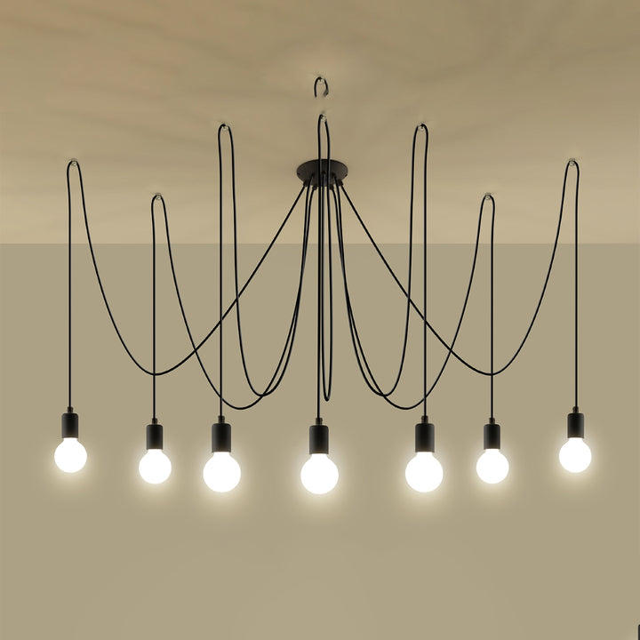 Kronleuchter minimalistisch schwarz 7 Glühbirnen - Modell Arsidor