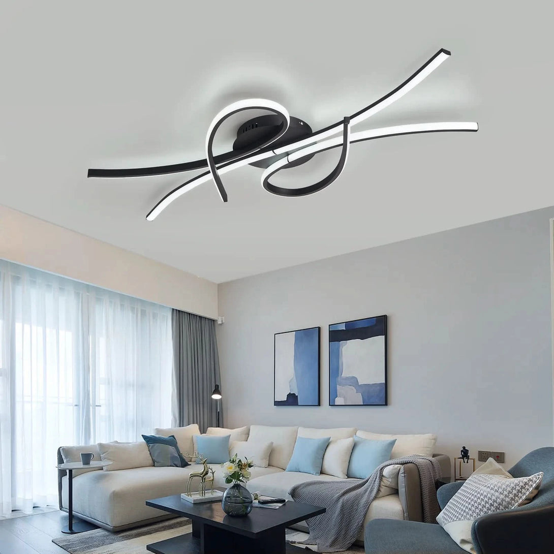 🎨 Ausgefallenes und modernes Design: Ihr ausgefallenes und modernes Design ist von geschwungenen Formen und den Farben Schwarz oder Gold inspiriert. Das LED-Licht wird durch ein Acrylpaneel gestreut und erzeugt ein sanftes, indirektes Licht.