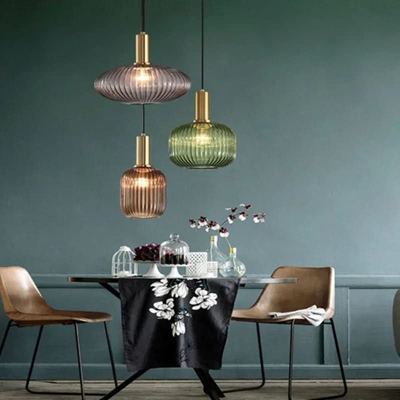 Kreieren Sie eine einzigartige Beleuchtung, indem Sie mehrere Pendelleuchten in verschiedenen Größen und Farben für einen beeindruckenden visuellen Effekt kombinieren.